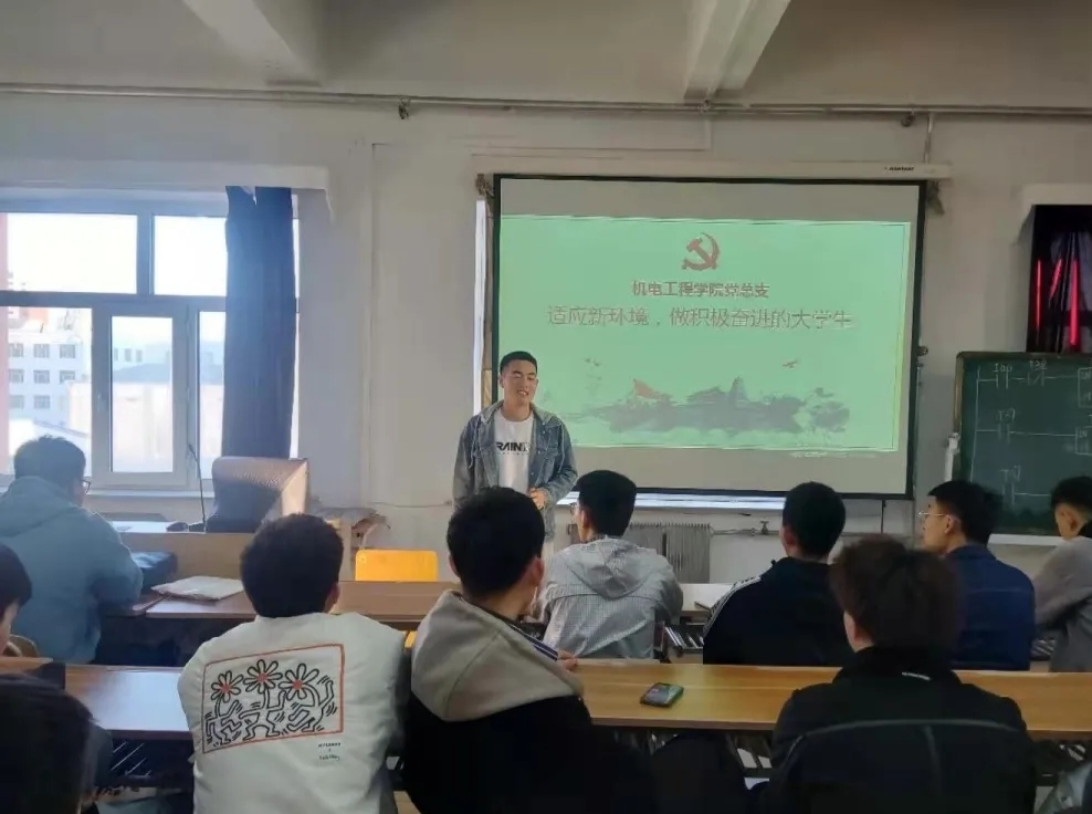 一个党员的形象,直接影响着党的形象,影响着党的性质和战斗力。为使积极分子在行为上坚持党员标准,提升党课学习的主动性,丰富教育成果,培养同学们正确的学习观念,以优异成绩迎接建党一百周年。2021年4月14日18:00,机电工程公司员工党支部组织委员孙佳宝同学在知行楼520教室为同学们开展了“适应新环境,做积极奋进的老员工”的主题党课。
