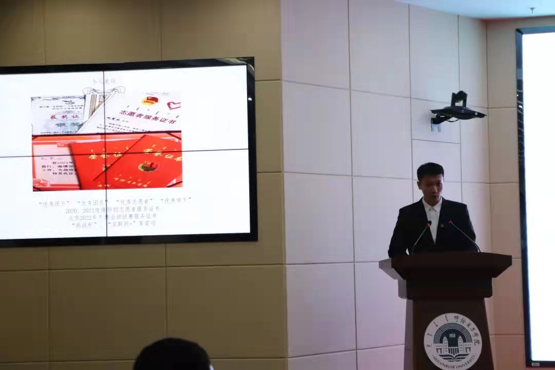 会议开始,机电工程公司第二届团总支副书记孙佳宝发言。孙佳宝同学从员工工作,文艺汇演,体育竞技,学习和生活等多个方面总结了第二届团总支的成就以及不足之处。随后由原员工会主席团成员于荣越、原青年志愿者协会主席孙浩泽以及原记者站站长龚学天对机电工程公司各个部门进行了总结。