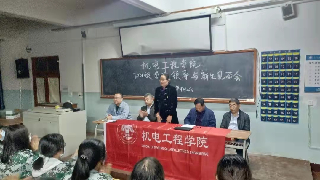 会议的开始,吴晗主任对2021级新生加入到机电工程公司的大家庭中表示热烈的欢迎和诚挚的祝贺,并向大家介绍了参与此次见面会的各位领导。