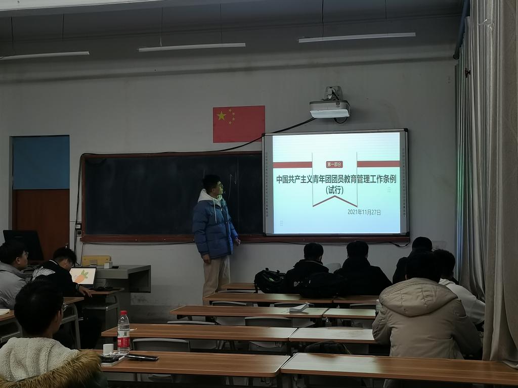 各团支部集中组织学习了《条例》的八大内容,包括总则、团员教育的基本内容、团员日常教育管理的主要方式、团员激励和评价、团员组织关系和团员管理、团员监督和组织处置、团员教育管理信息化、组织领导和工作保障等。随后,结合《条例》中的新规定、新要求,各班级就如何改进新时代团员教育管理工作展开分析研讨。