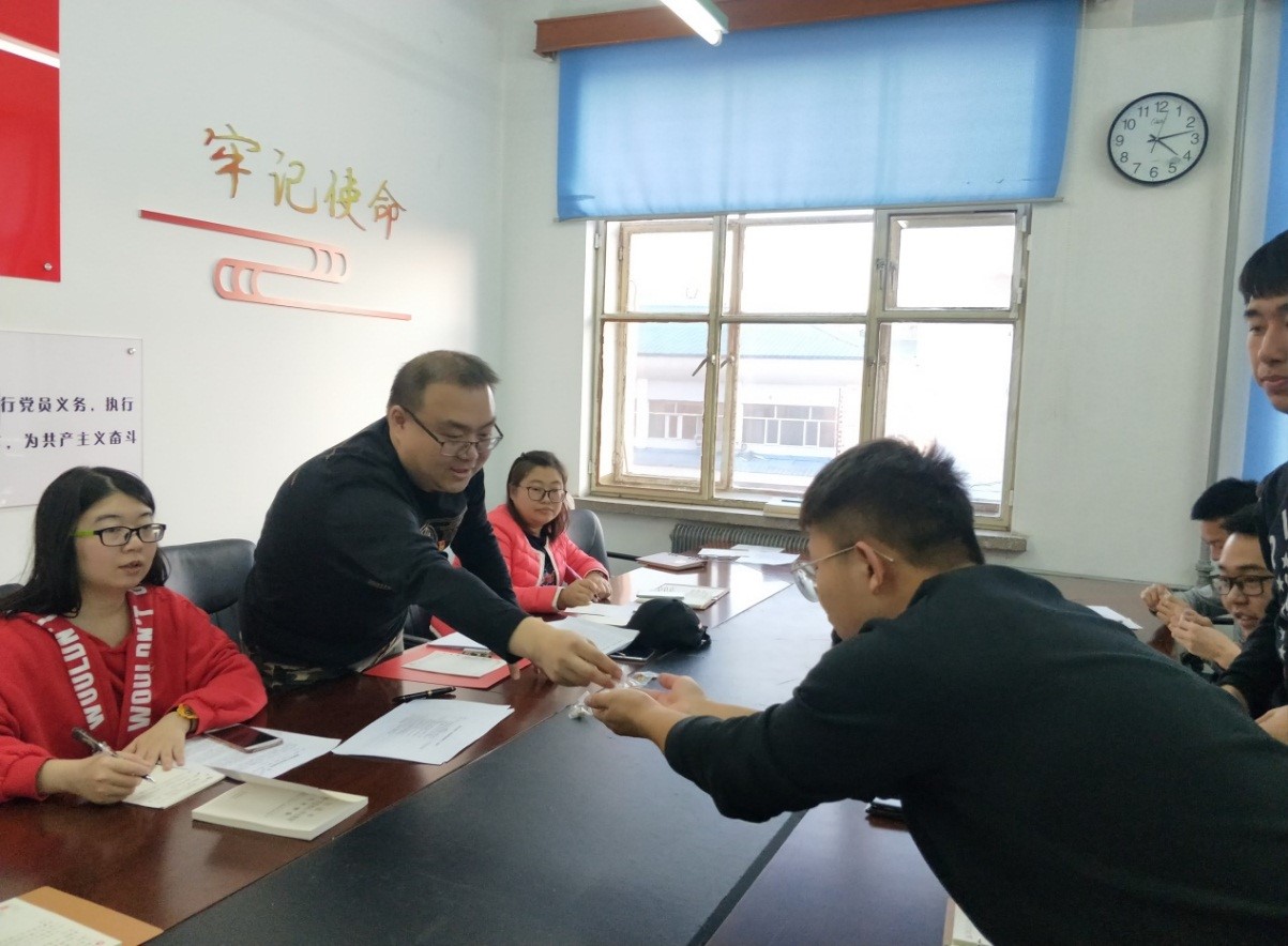 读书会后吴晗主任为员工党员发放党徽,特别要求员工党员在日常学习生活中必须自觉佩戴党徽,亮明身份,以警醒自己并接受同学们监督。“佩戴党徽亮身份、树立形象作表率”进一步增强员工党员的使命感和责任感,在学习生活中做出表率。