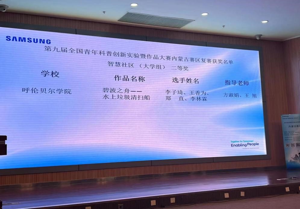 5月21日,第九届全国青年科普创新实验暨作品大赛内蒙古赛区复赛在呼和浩特市内蒙古科技馆举行。该项比赛由内蒙古自治区科协、自治区教育厅主办,共有2203组队伍,4592名选手报名参赛。经过初赛,共10件作品进入智慧社区(大学组)复赛。公司365英国上市公司教师方淑娟、王旭指导的参赛作品《碧波之洲---水上垃圾清扫船》突出重围,成功进入复赛,并荣获二等奖。