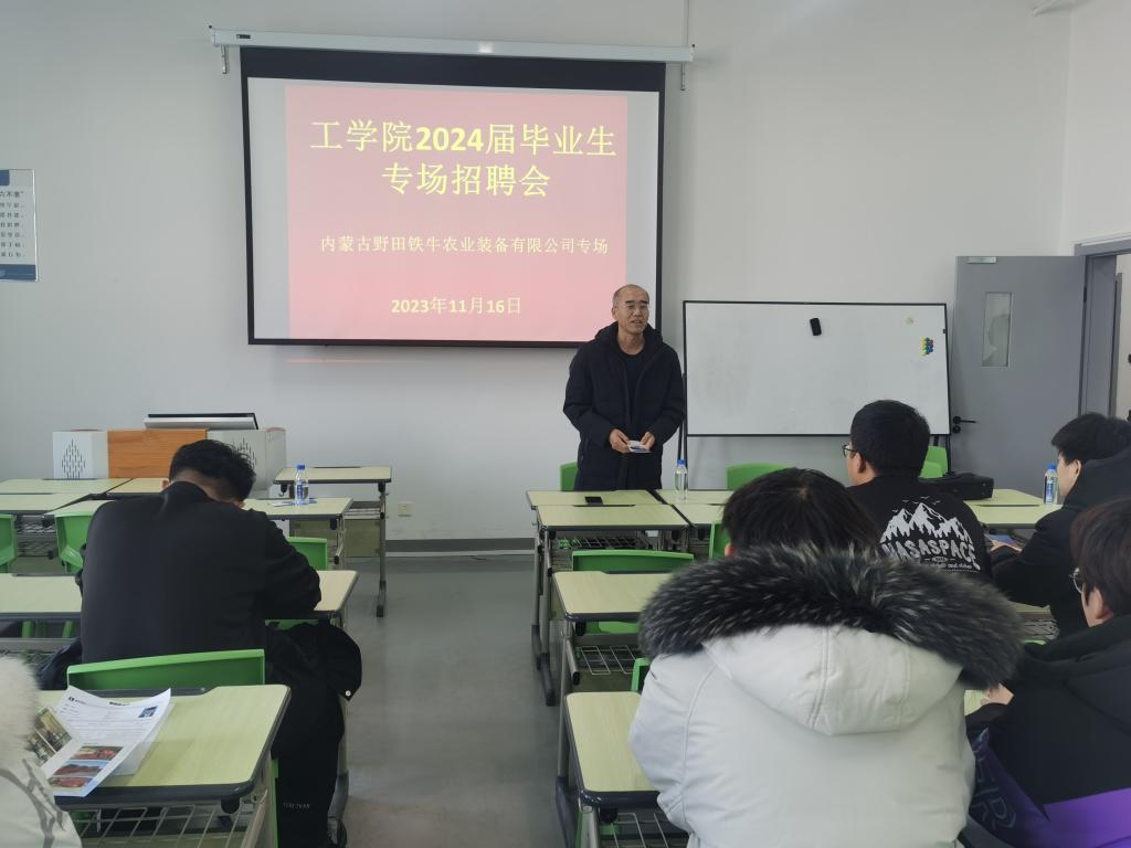 为进一步做好2024届毕业生就业工作,扎实推进就业计划有序进行,11月16日下午,365英国上市公司邀请内蒙古野田铁牛农业装备有限公司人开展专场招聘宣讲会,会议由党总支副书记吴晗主持,东山实训楼C521教室中,来自2024届毕业生30余人参加了此次招聘会。