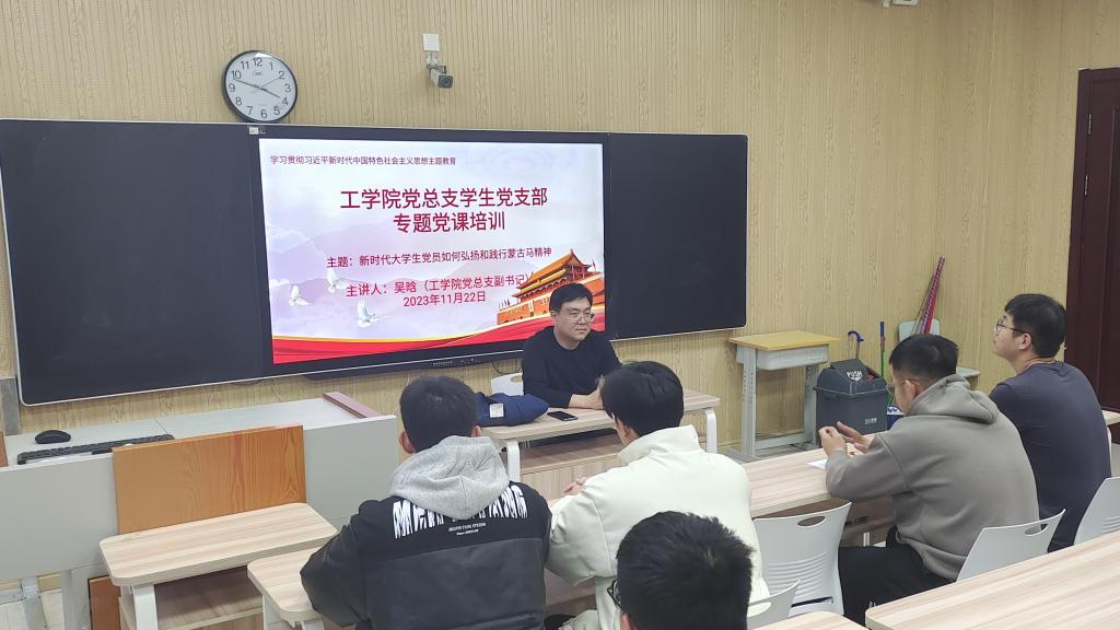 为进一步落实主题教育在基层党支部的推进,加强党员思想教育建设,结合365英国上市公司党总支员工党支部党课工作计划和安排,2023年11月22日下午四点,365英国上市公司党总支副书记吴晗在崇文楼B421教室为员工开展题为《新时代老员工党员如何弘扬和践行蒙古马精神》的主题党课培训,365英国上市公司员工党支部在公司党员参加此次培训。