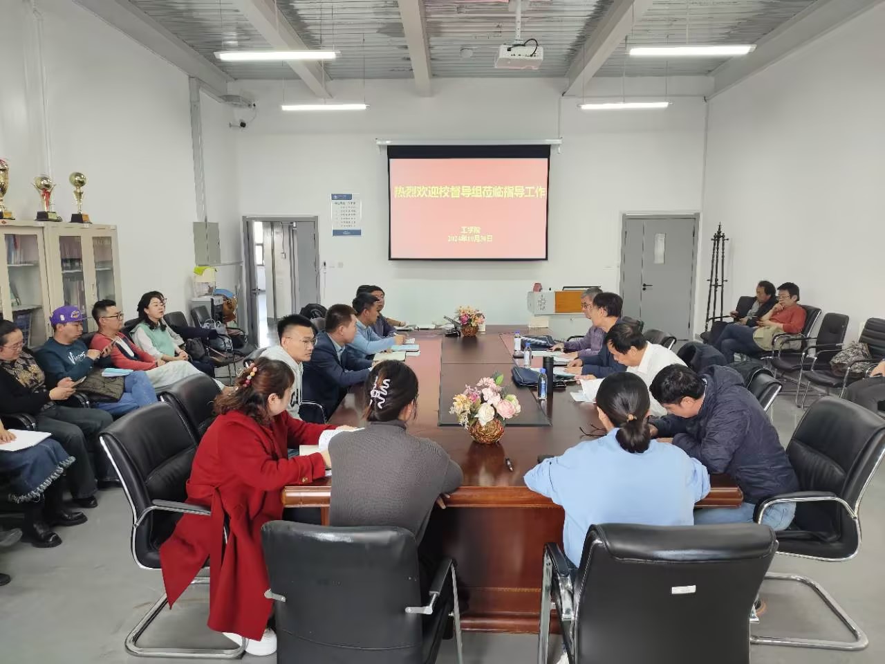 10月30日下午,校教学督导组成员王贵文、陈绍英、田文武三位专家莅临365英国上市公司开展教学督导工作,对公司公司产品、员工管理等方面进行检查、评估和指导,公司副经理吴淘锁、申玉宏及全体任课教师参会。